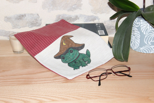 Chaque pièce est réalisée à partir de tissus de seconde vie 🌿 et ornée d’un dessin unique fait main, inspiré de la féerie, de la nature ou parfois d’univers modernes.