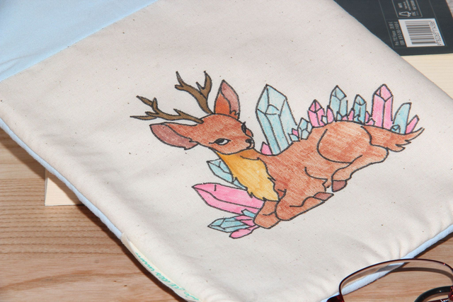 Chaque pièce est réalisée à partir de tissus de seconde vie 🌿 et ornée d’un dessin unique fait main, inspiré de la féerie, de la nature ou parfois d’univers modernes.